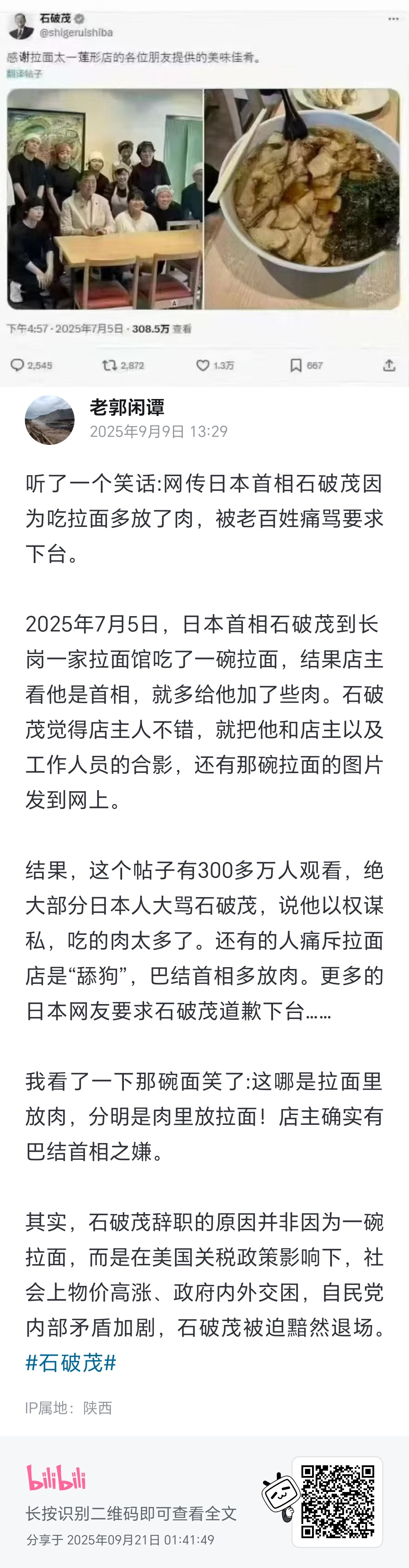吃个面也要被骂的石破茂
